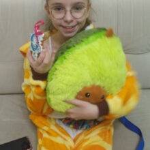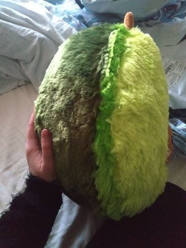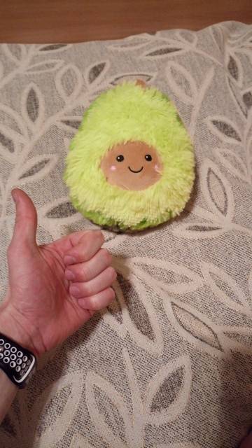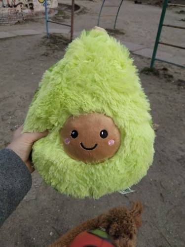 Avocadik came pretty quickly, in 21 days. Throughout the journey was tracked. Very soft and pleasant to the touch. Of the minuses only that the fur falls out and the face is a little curve, but it's uncritical. Ordered 30 cm
