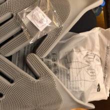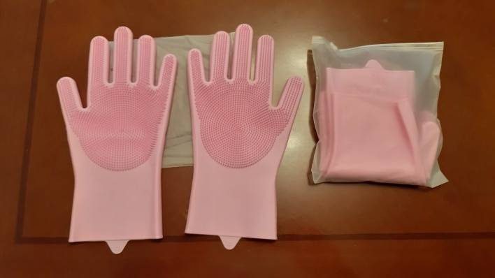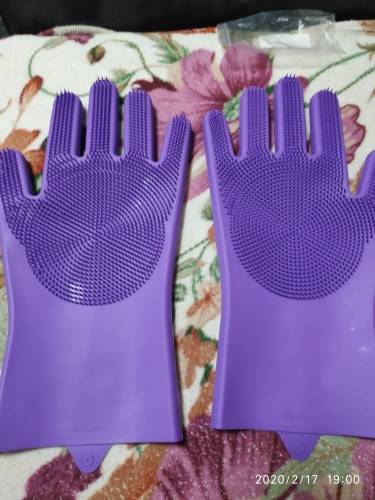 Ordered January 6, received February 26. Received ukrmail in the usual package. To the gloves were whole. After testing gloves when washing dishes, I concluded for myself, they are uncomfortable. When you wash the dishes sometimes you want to wash with your finger in some places it is not convenient, but on the gloves on the bend of the finger there is no bristles, it does not allow you to wash well. That is, it is useless, you have to take for this other accessories