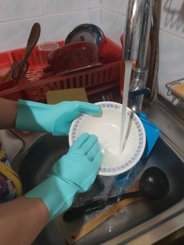 Today soap to the gloves dishes, it is not usual course, since silicone thick, but it's a matter of time) Noted for yourself, that can be washed and hot, and with cold water without harm to hand as silicone does not convey the temperature of the water. Now only question how much they will last. If will last 2-3 months, then will again buy.