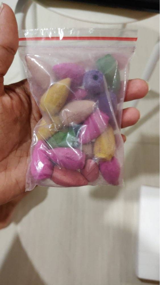 The incense cones come in a variety of aromas: fruits, rose, carnation, lavender, lily, jasmine, mint, & wormwood