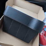 Very simple to install, provides storage for small items, easy to access, prevents cell phones and other small items from disappearing between the seat and console.