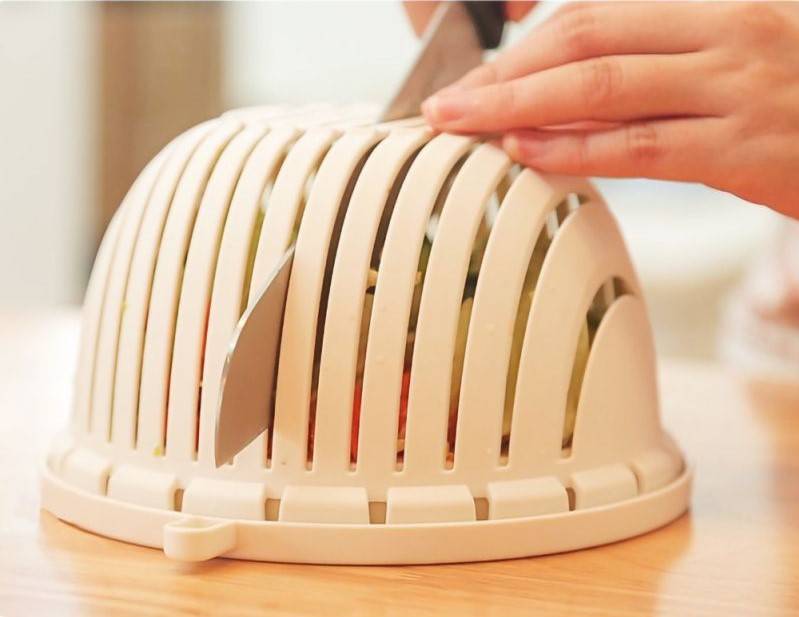 I've been trying to eat healthier, so I bought the Salad Cutting Bowl to make it easier to chop up salad ingredients. I hate spending more time chopping than eating. I was pleasantly surprised how easy it was to use and how well made it is. I now have salads everyday since it is so fast to throw ingredients into the bowl, rinse to clean, and chop! It's safer for the older kids to use too.