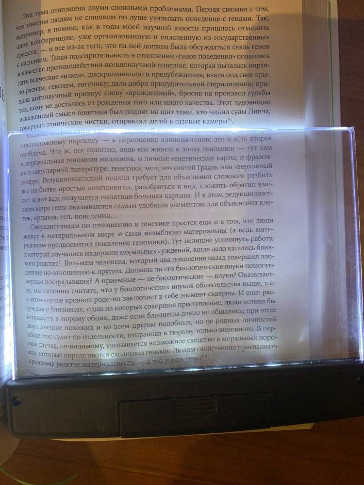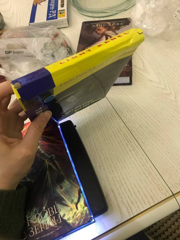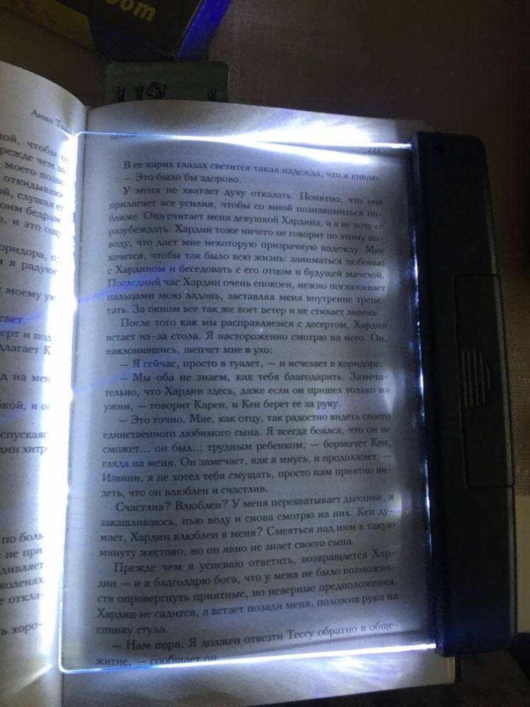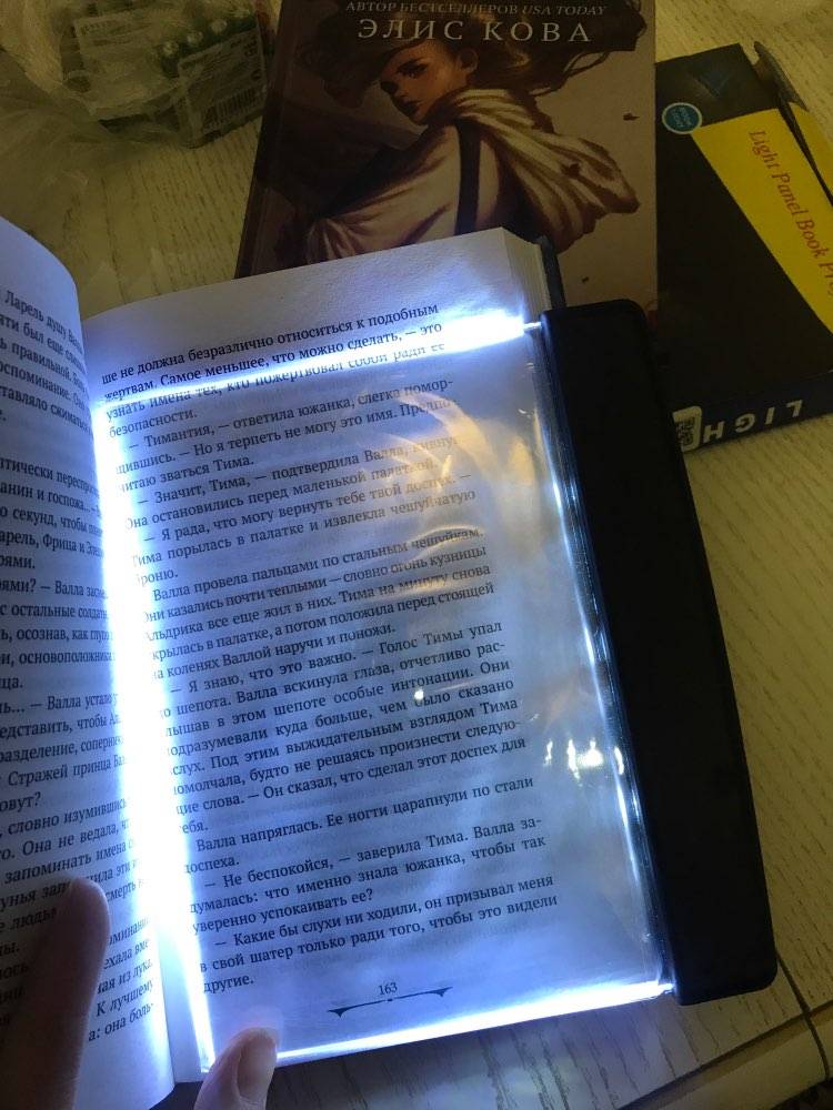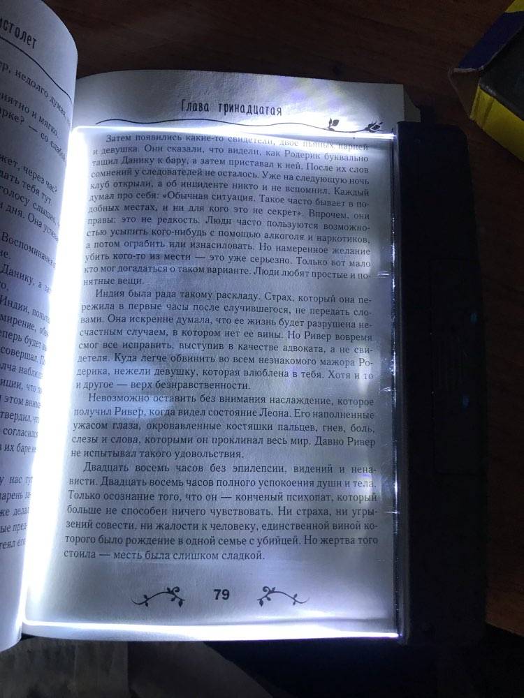 To the west of Belarus is quite a long delivery-40 days. The lamp was less than I expected. Plastic with small defects, but odorless. There is no edging, as in the photo because of this, the bending of the book is strongly illuminated. But in general it is normal, in total darkness to read quite real, but not sure how comfortable it will be to the eyes with time. Batteries were not included. Need 3 AAA elements. In general, for this money is normal.