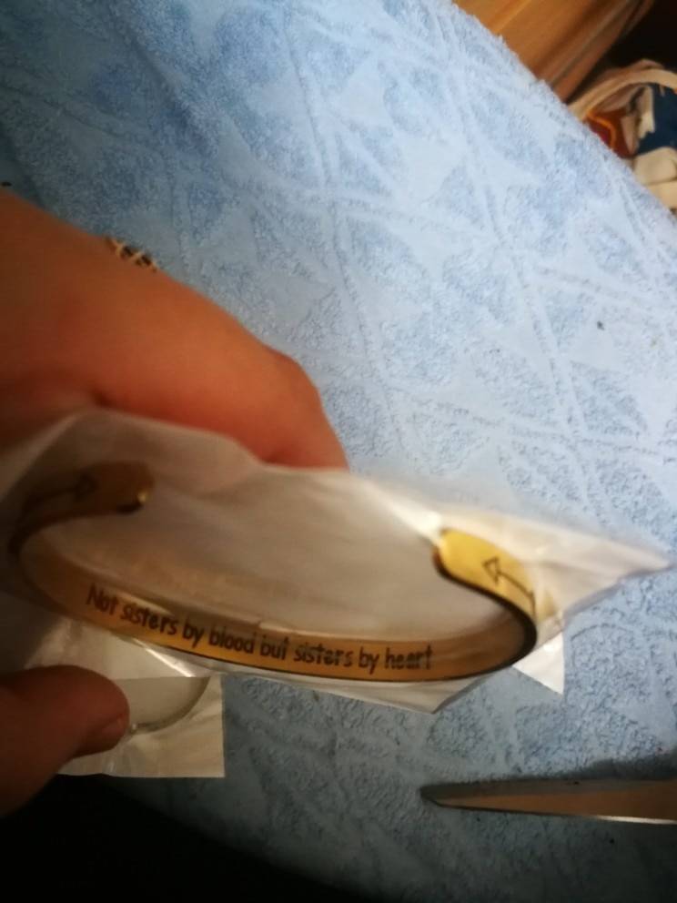 “I purchased this for my best friend. We loved the secret message on the inside of the bracelet. It is made of stainless steel, and it is extremely durable. She will have it and enjoy it for years to come. Great gift, great price. She loved it!”