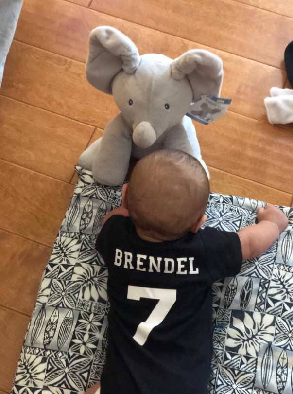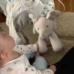 My four-month-old loves this elephant I thought he would get bored but it still occupies him two months later. We love our flappy the elephant.