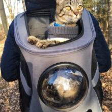 Our breathable cat backpack is great for larger “big boned” cats, 2 medium sized cats (yes, you can use it for two cats), or lots of kittens!