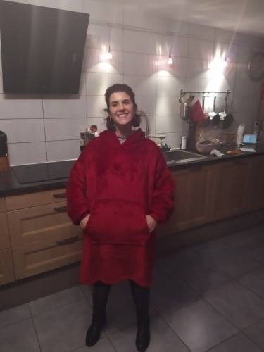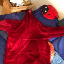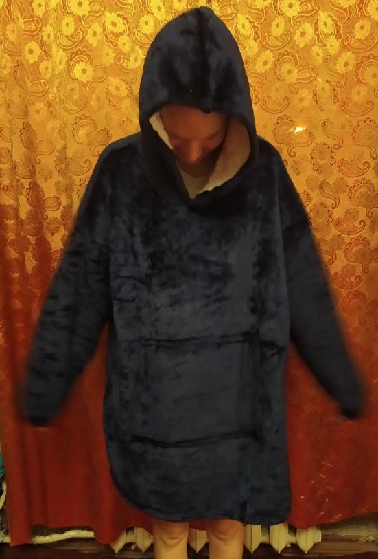 The coziness of a blanket with the fit of your favorite sweatshirt is here. With extra-large sleeves, a giant warm hood and a roomy front pocket, the blanket keeps you warm and cozy while lounging at home, watching TV, family game night, camping, sporting events or anything in between.