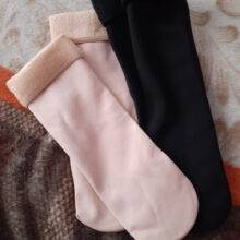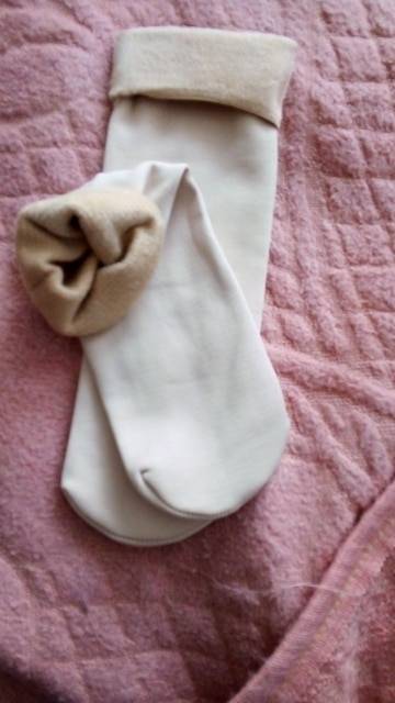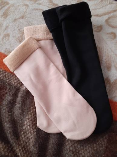 Good socks. It's good to stretch. With insulation inside. In Black, the outside of the socks are smoother, like Kapron tights, in beige-the surface is softer and pleasant to the touch. After use, I will add a review. I hope they are warm enough and do not slip off their feet. While, it seems, they sit tight enough. Thanks to the store!